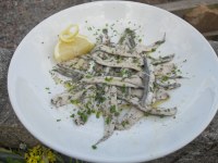 These bad boys (above) aren’t the common or garden tinned lads and you probably wouldn’t lash them onto a Pizza. They are instead, anchovies in their natural state, post cooking and not salted hence the lovely white flesh and silvery skin.