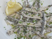 Drain the anchovies then and all you have to do is pep them up with good olive oil, minced garlic, little salt and pepper, chopped flat leaf parsley and a good squeeze of lemon juice.