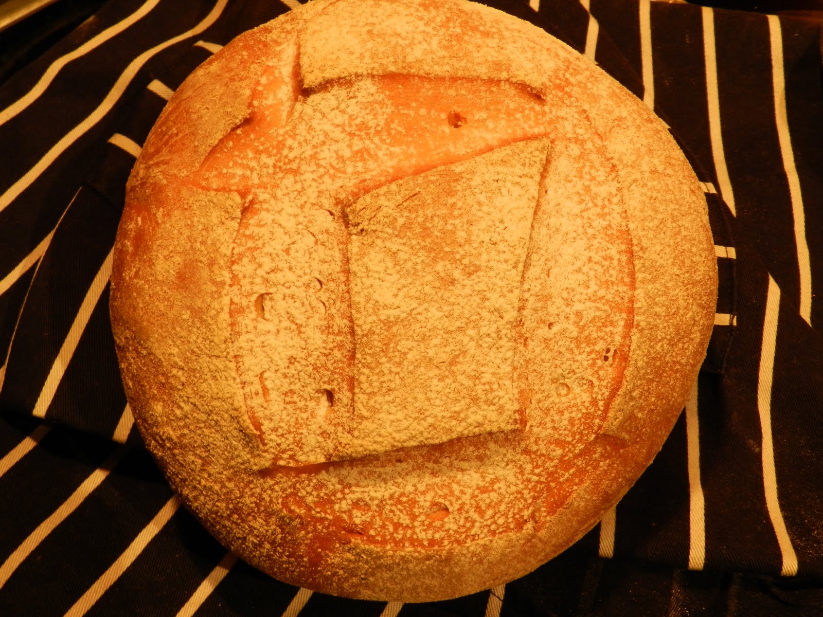 At this stage get it straight into a hellishly hot oven (full tilt) for 15-20 minutes – keep an eye on this bad boy as you don’t want it to burn! The slashes I made on my loaf add nothing more than decoration but in the baking world Master Bakers have their own signatures so the markings denote the Baker and or the region. Slash the dough jsut before you cover it for proving.