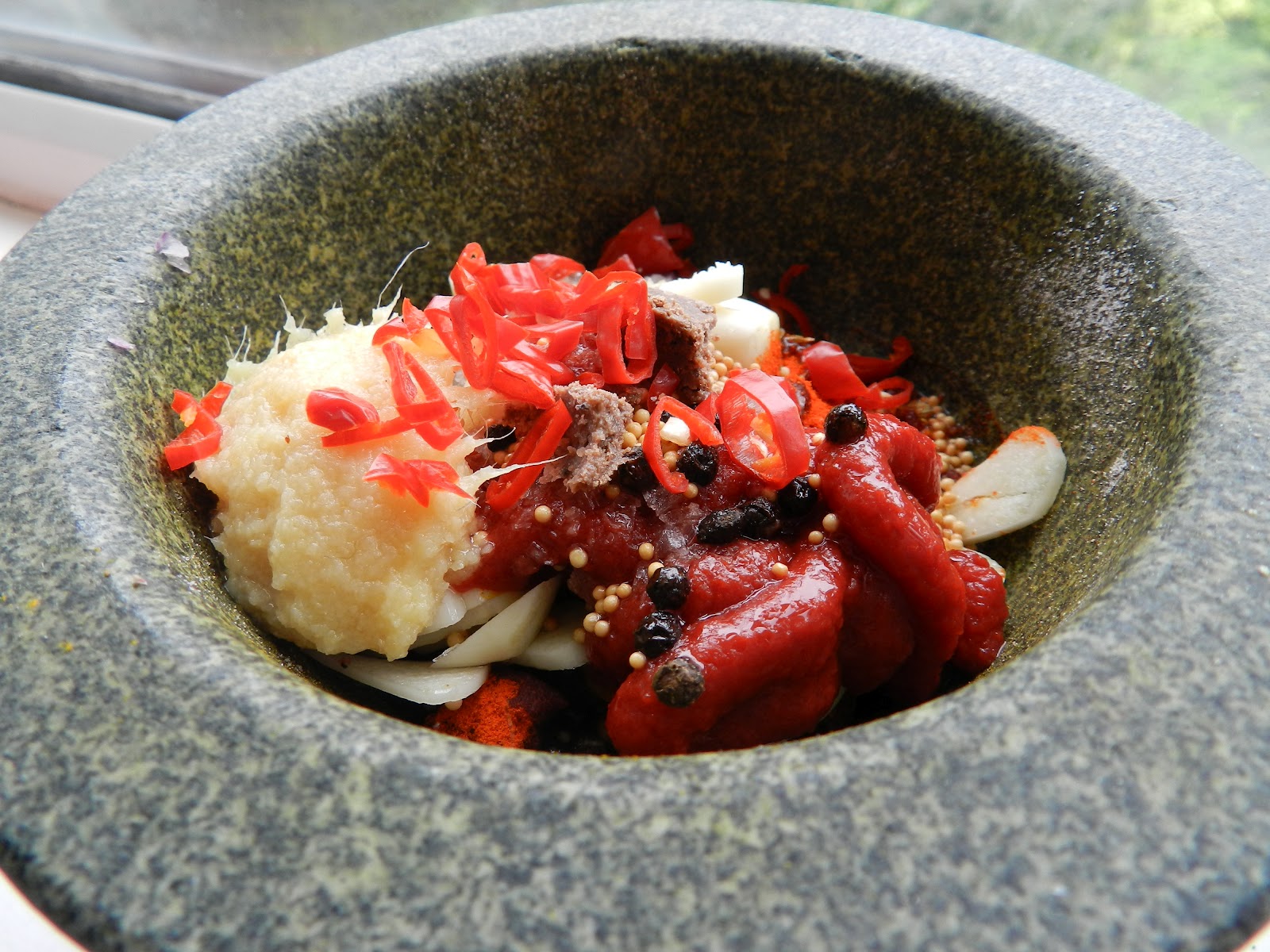 I think I may have killed somebody if it were not for the humble Mortar and Pestle. It’s the single most Zen object in the world as far as I am concerned. The white heat and testosterone fuelled melting pot of a professional kitchen is enough to send you one of two ways. First you can wither and die as the work piles up ontop of you and you are eventually thrown out the back with buckets of slop or second you can become a dog, point blank refusing to die and taking the head, hand and heart of anyone that dares step too close. This has it’s draw backs….you become that dog 24 hours a day 7 days a week 365 days a year….you need something to temper your teeth.