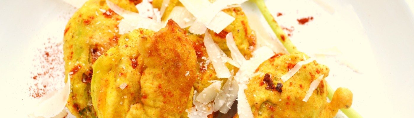 Step7: Shallow fry the stuffed flowers 2 at a time and serve with shaved Parmesan