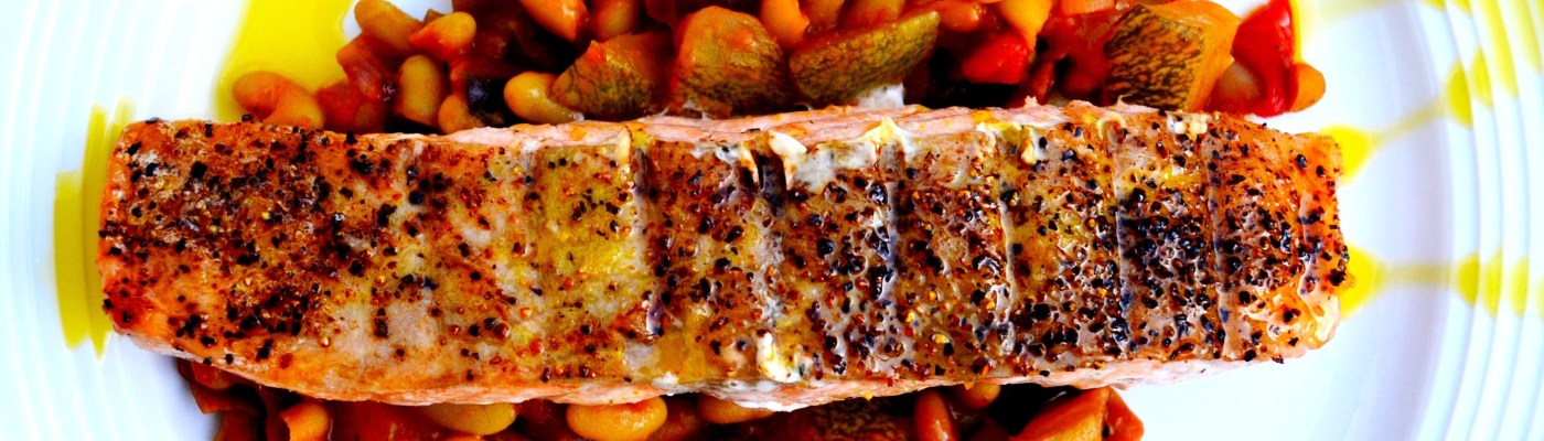 9 thoughts on “Lemon Pepper Salmon & Bean Ratatouile
